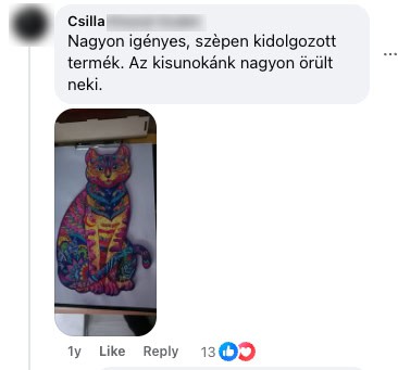 Gyors szállítás, jó kommunikáció az eladóval. Karácsonyi ajándéknak szántam de furdalt a kíváncsiság és kipróbáltam a cica puzzlet. Gyönyörű színek, jó kézbe venni. Kreatív, szórakoztató, kikapcsol. A kis állatfigurák külön bónusz. Most vásárolok még ajándékba😊