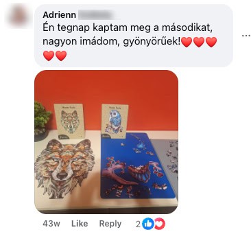 Gyerekkorom óta szeretem a kirakókat, mindenfélét kipróbáltam már… A tiétekkel is nagyon elégedett vagyok, egyszerre volt nehéz és élvezetes, plusz egészen új érzés volt kirakni 🙂 leginkább a darabok formája miatt. Sajnáltam amikor befejeztem, hogy már vége, így másnap megint kiraktam annyira jó volt. Fogunk még rendelni… 🙂